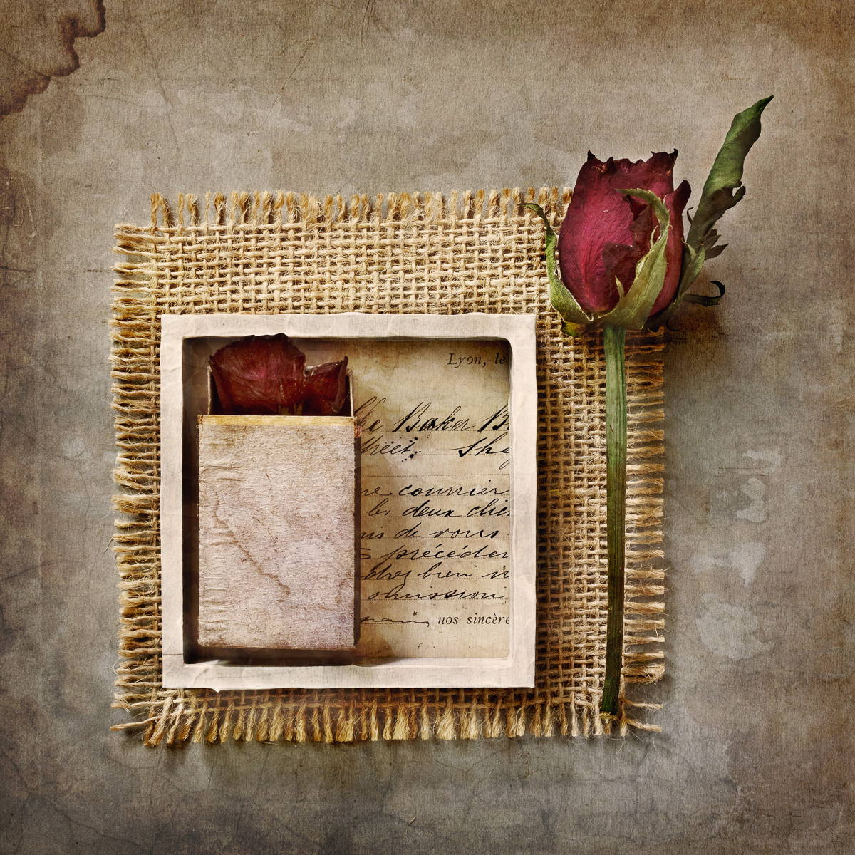 Third Place Sharon Sawyer, Rose on hessian